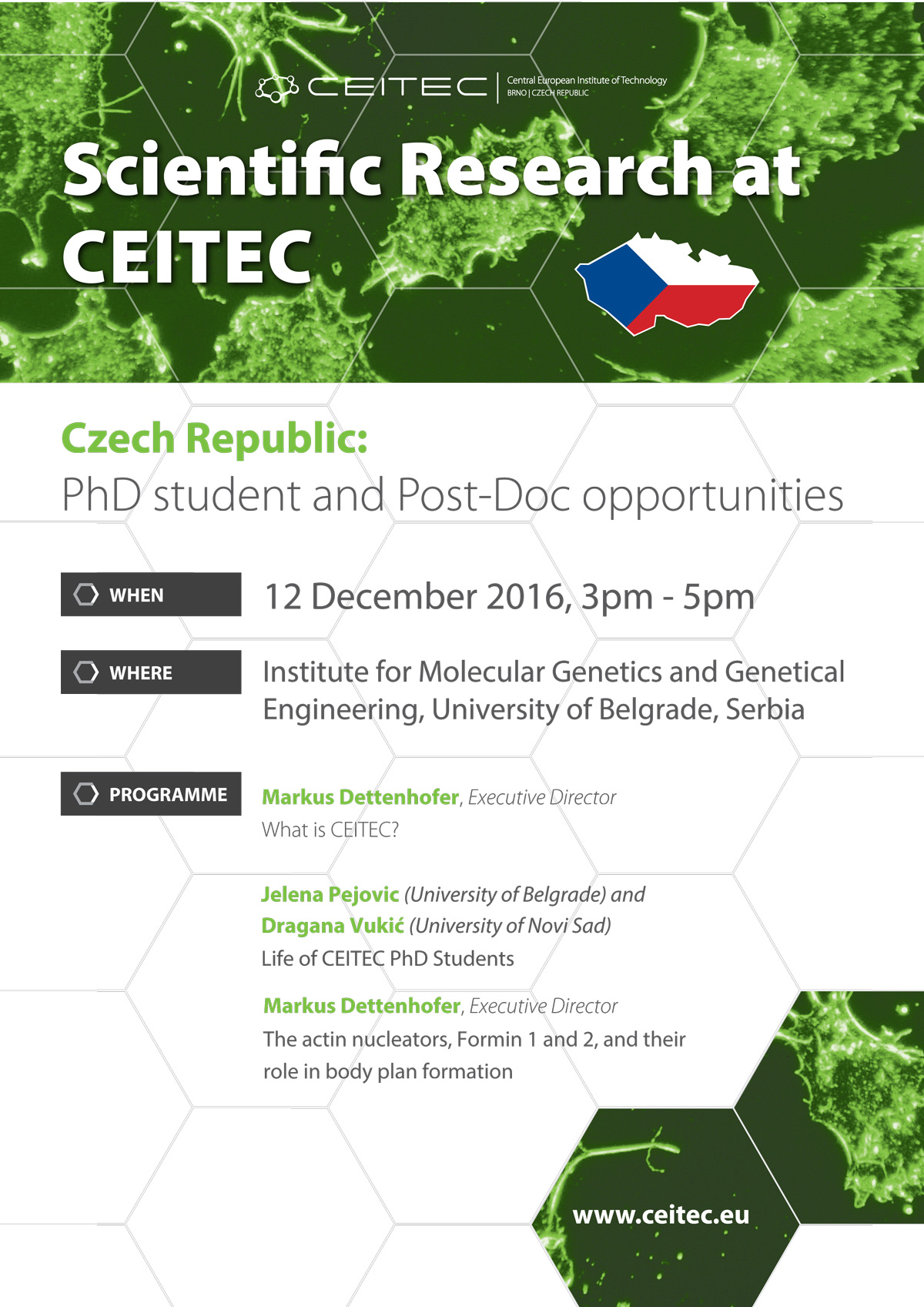 Промоција докторских и постдокторских програма института CEITEC у ИМГГИ