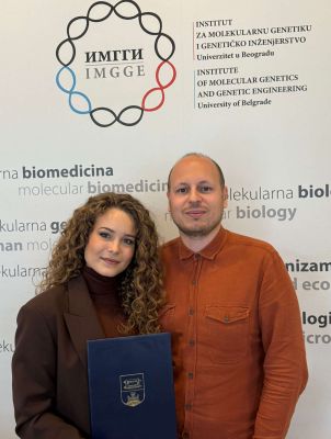 The award for the best scientific research and professional student paper in 2024, presented by the University of Belgrade in the group of faculties of natural and mathematical sciences, was given to Natalija Miškov, a final-year student at the Faculty of Biology. The paper, titled “Examination of the probiotic potential of Apilactobacillus kunkeei isolates and their efect on the expression of the vitamin D receptor in vitro” was carried out in the Probiotics and Microbiota–Host Interaction Group under the supervision of Dr. Dušan Radojević.