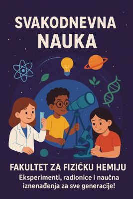 Program pod nazivom "Svakodnevna nauka" će biti organizovan u petak, 26. septembra od 16h do 22h u prostoru Fakulteta za fizičku hemiju na adresi Studentski trg 12-16. Program obuhvata brojne interaktivne sadržaje u sklopu kojih će biti predstavljeni i neki od projekata koji se trenutno realizuju u IMGGI.
